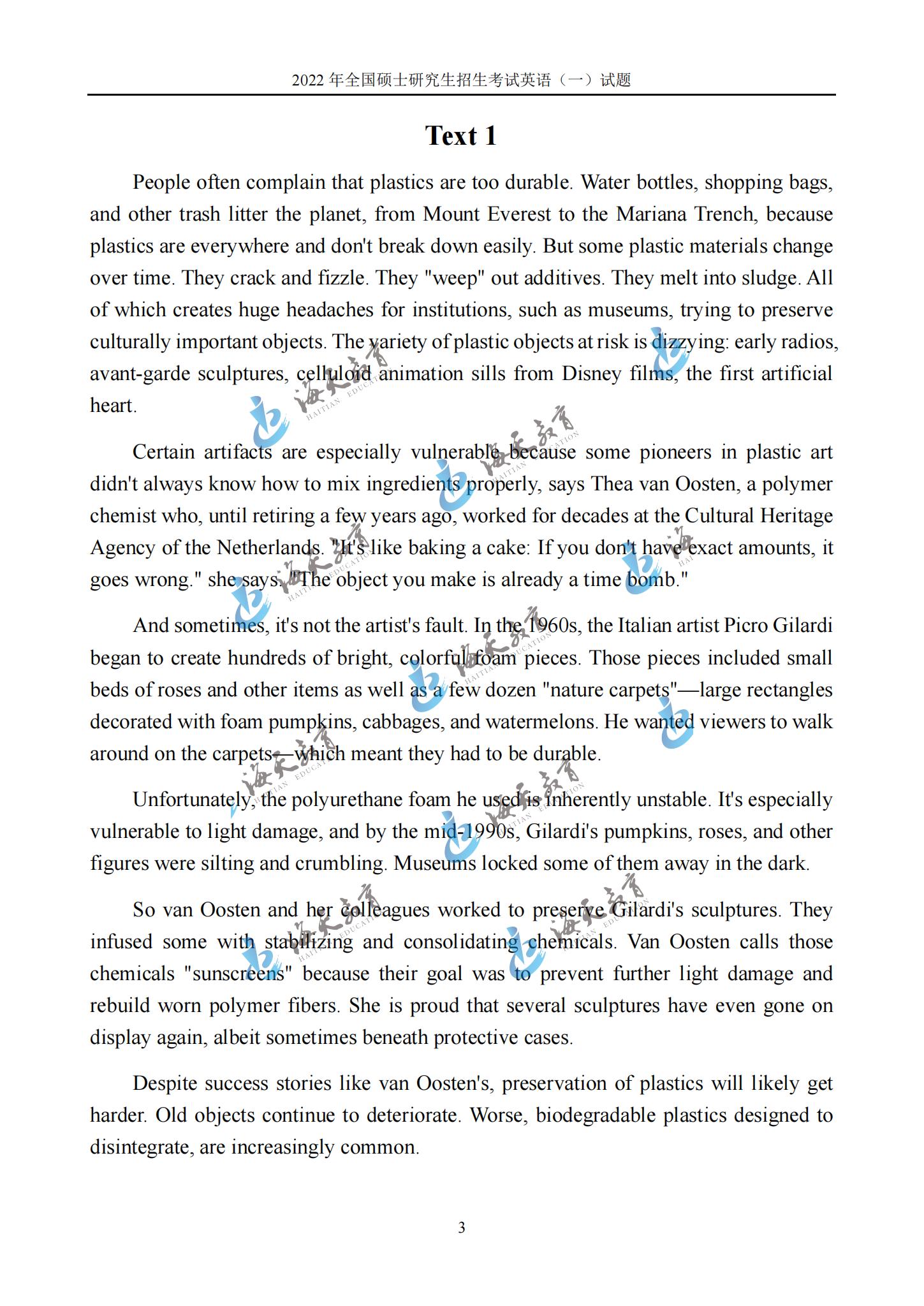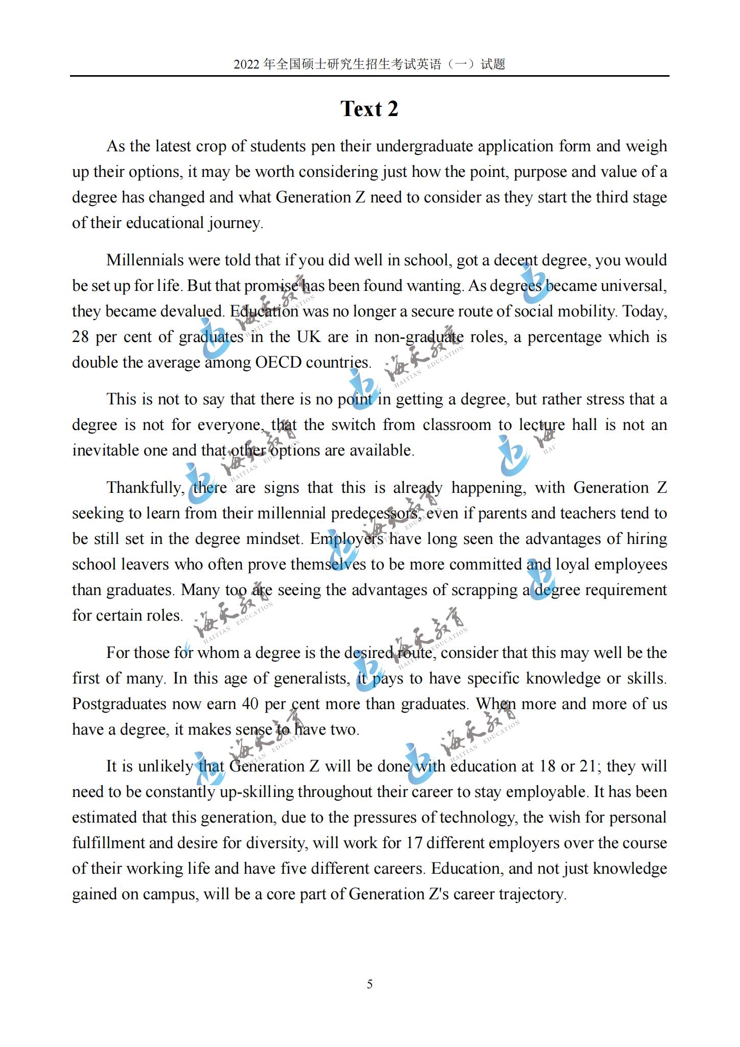 2022考研英语一真题原文完整版