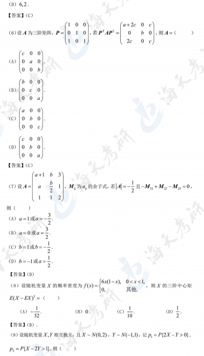 以上就是海天考研网为各位考生整理的2024考研数学三真题及解析汇总,仅限参考。持续为考研学子更新其他考研科目考研真题及答案解析,各位考生可以根据自身需要关注收藏,及时查看完整版2024考研真题及答案解析。