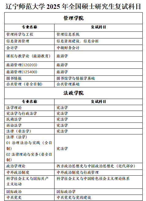 辽宁师范大学2025考研自命题复试科目大纲